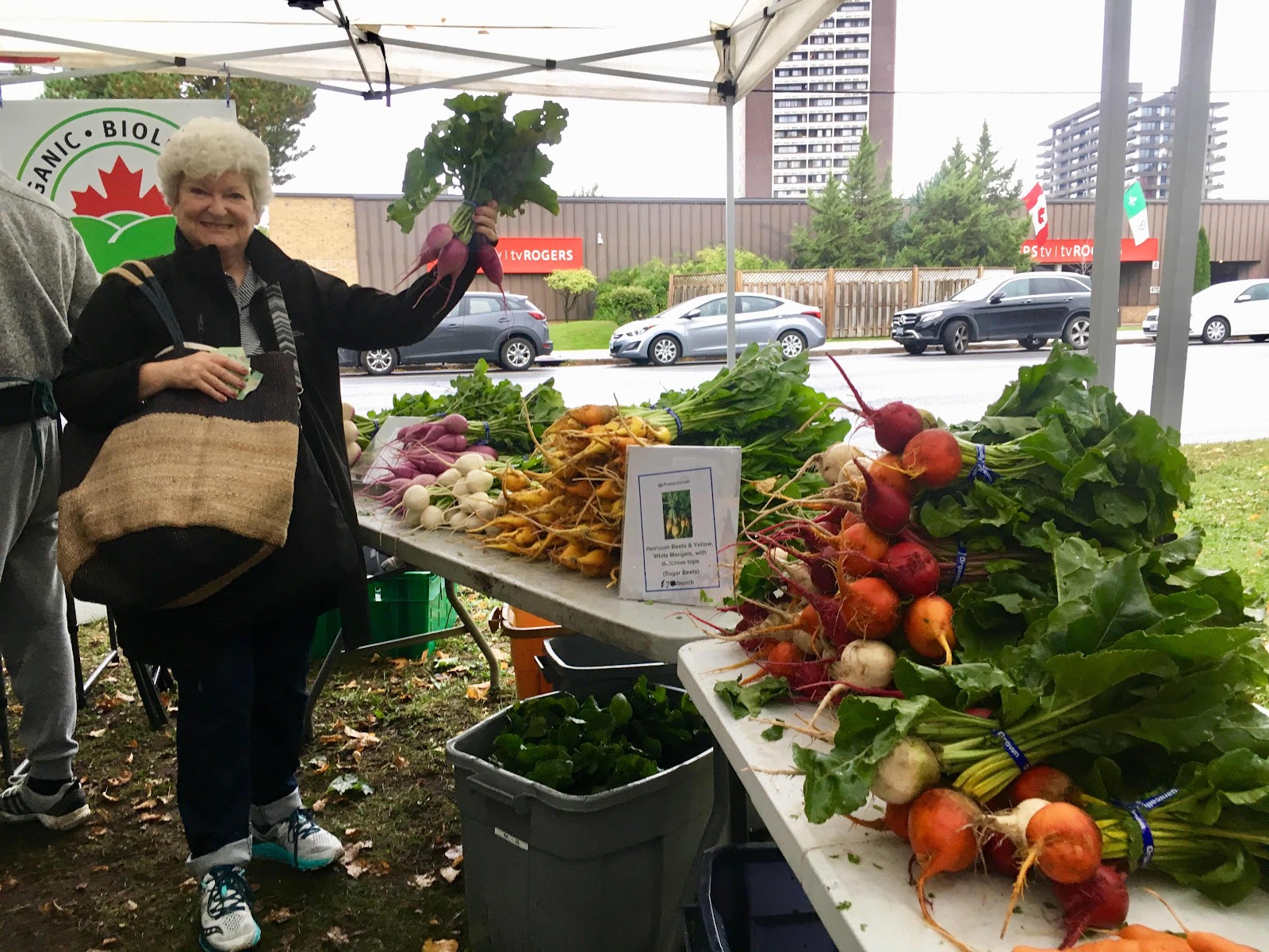 Mela at the market buying vegetables for the pot au feu she made for Caroline's birthday